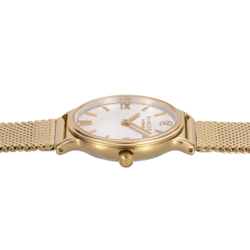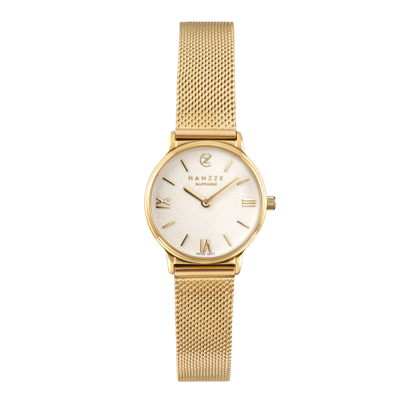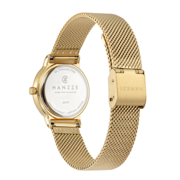 Zegarek HANZZE Infinity to połączenie subtelnej formy, szwajcarskiej precyzji oraz hipnotyzującego detalu. Wyjątkowy charakter modelu dopełnia złota bransoleta mesh ze stali szlachetnej, odporne na zarysowania szkło szafirowe oraz szwajcarski mechanizm kwarcowy Ronda.